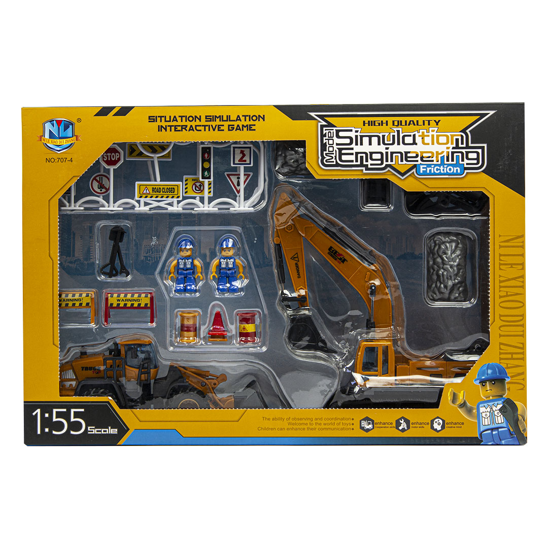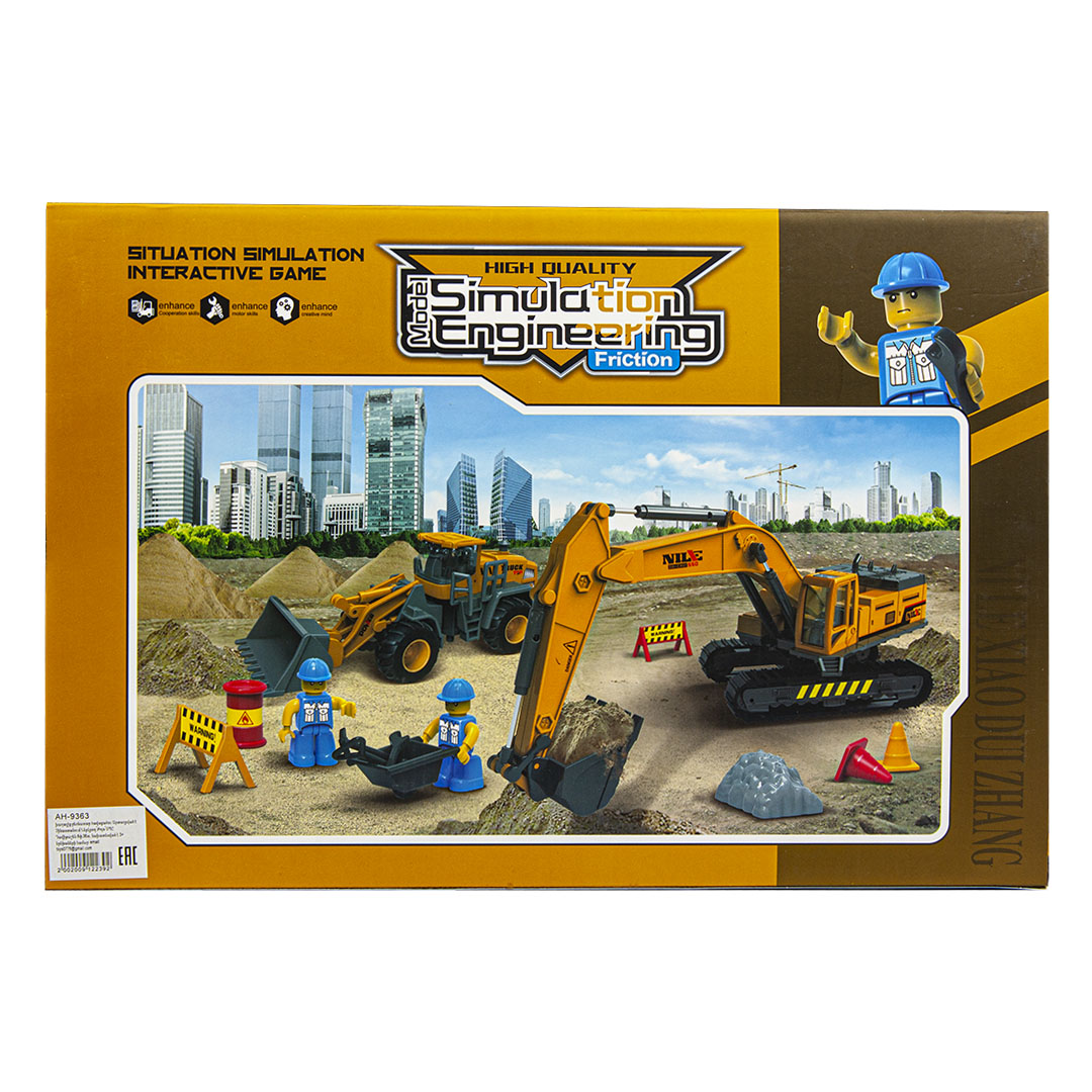 Շինարարական տեխնիկայի հավաքածու։ Ներառում է նաև մարդուկների ֆիգուրներ և ճանապարհային նշաններ։